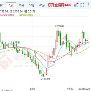 周三(3月20日)本交易日现货黄金日内维持震荡走势,今日开盘报2157.39美元/盎司,最高触及2159.89美元/盎司,最低触及2154.99美元/盎司,截止发稿金价报2158.88美元/盎司,涨幅0.08%。美联储对降息或许已经慢慢出现一些变化,主要表现为在等待经济转冷信号的同时,也更加关注衰退的风险。