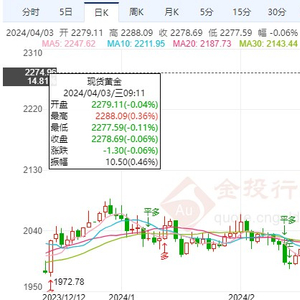 黄金再次上涨创历史新高,黄金多头太强势了,黄金多头还有力度,已经势不可挡,黄金早盘现价2278直接多。
