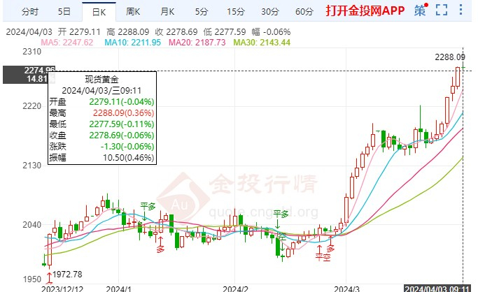 4月3日(周三),黄金价格盘内稳定下行趋势,日内黄金保持震荡横盘,短线来看,金价保持小幅下落趋势。