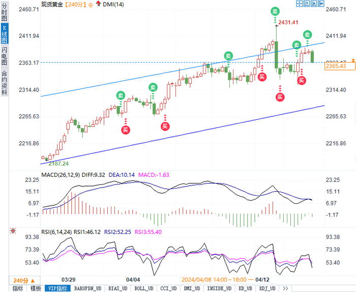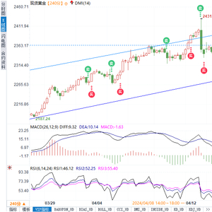 若买盘力量得到增强,金价近期的阻力位将位于2400美元/盎司。一旦金价突破这一水平,可能会再次挑战历史最高点2432美元/盎司。
