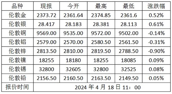2024年4月18日伦敦金价格多少?伦敦金属价格走势查询!