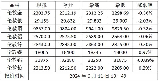 6月11日伦敦金(国际现货黄金)价格多少?伦敦金属价格走势查询