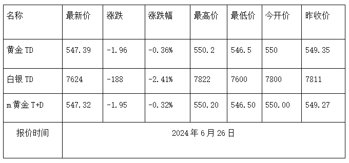 黄金TD今日走势如何?2024年6月26日黄金TD价格多少?