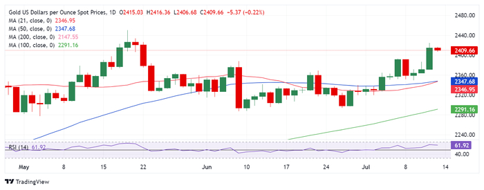 Mehta指出,由于14日相对强弱指数(RSI)保持在远高于50的位置,黄金价格的短期技术前景继续显示,金价将重新测试历史高点2450美元/盎司。