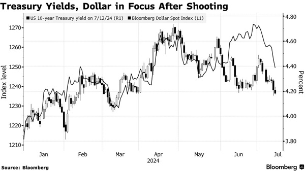 特朗普遭遇袭击后美元、美债收益率、比特币等受到关注