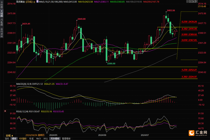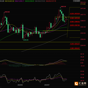 Valencia称,要想继续看涨,金价需要攻克2412美元/盎司。一旦突破该位,金价下一个阻力位将是2450美元/盎司,然后再挑战历史高点2483美元/盎司。