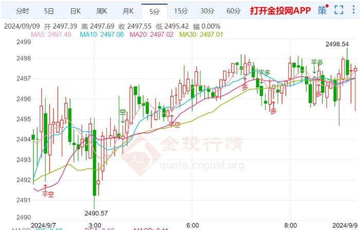 现货黄金上周五收盘大跌19.33美元,跌幅0.77%,报2497.25美元/盎司。