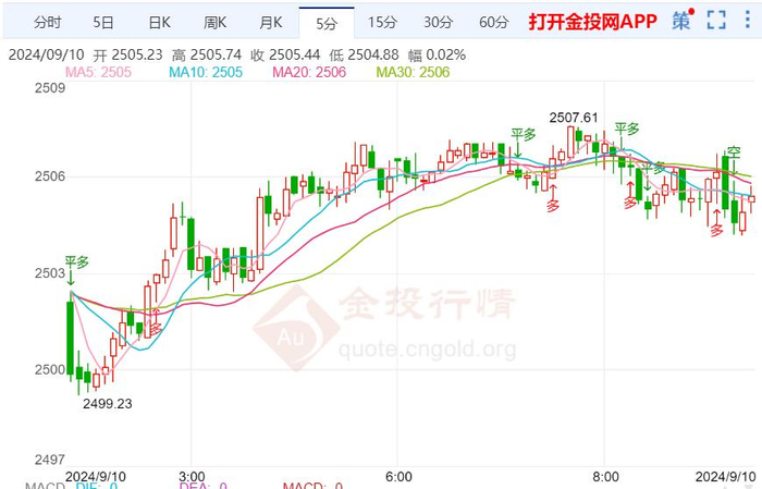 周二(9月10日)亚市盘初,现货黄金窄幅震荡,目前交投于2503.75美元/盎司附近。金价周一小幅反弹,回升至2500关口上方,收报2506.04美元/盎司,美债收益率反弹受阻,徘徊在15个低位附近,给金价提供反弹机会,但美元指数的反弹,令金价涨幅受限。投资者等待美国通胀报告为美联储可能的降息规模提供进一步线索。
