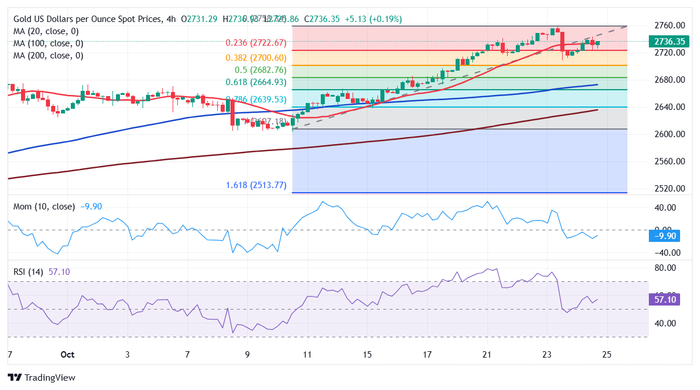 24K99讯 周五(10月25日)亚市盘中,现货黄金短线突然快速下滑,金价正逼近2727美元/盎司,日内下挫逾8美元。FXStreet首席分析师Valeria Bednarik撰文,对黄金技术前景进行分析。