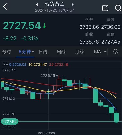 北京时间10:07,现货黄金报2727.54美元/盎司。