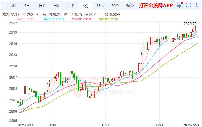 本交易日(2月13日)亚市盘中,伦敦金价格上涨,目前交投于2920.55美元/盎司,涨幅0.58%,今日金价开盘报2902.76美元/盎司,最高上探2922.60美元/盎司,最低触及2900.18美元/盎司。