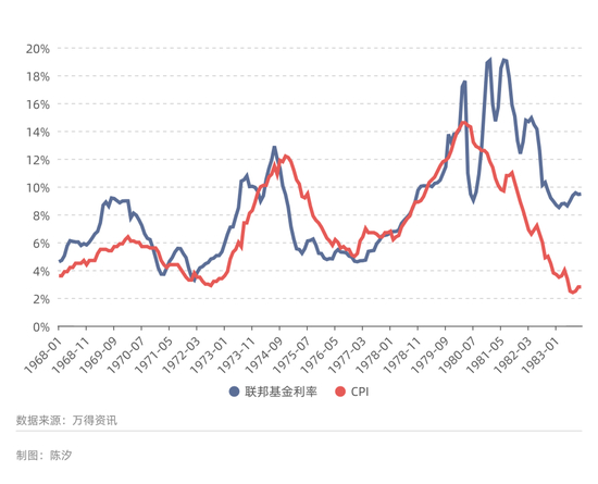 图2:美国联邦基金利率与美国通胀(1968年-1983年)