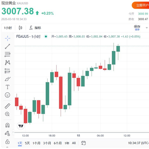 24K99讯 周二(3月18日),黄金价格升至3007美元,日内触及3008美元高点。中东避险情绪骤升,以色列对加沙地带进行大规模打击。美国总统特朗普警告,若红海再次遭到也门胡塞叛军袭击,伊朗将面临后果。高盛闪现交易信号,看到各国央行购买黄金速度非常快。