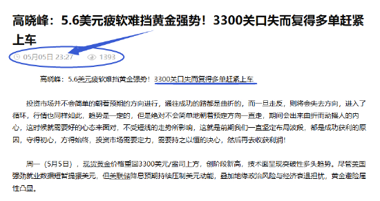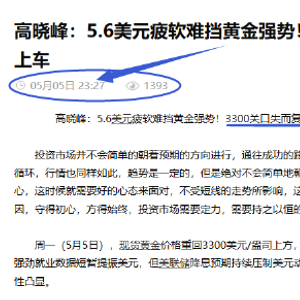 高晓峰:黄金暴涨 是见顶信号还是多头洗盘