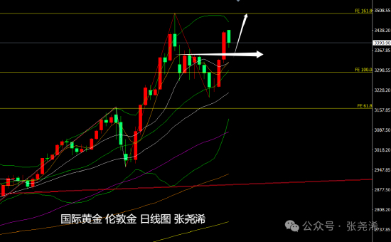 黄金:下方关注3365美元或3350美元附近支撑;上方关注3450美元或3500美元附近阻力;