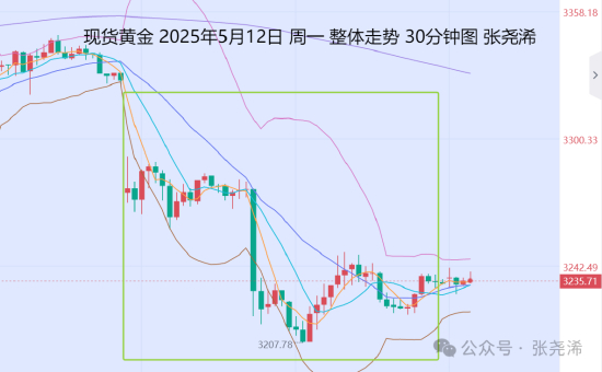 之后,亚盘尾中美日内瓦经贸会谈联合声明发布,达成削减关税协议,缓解了市场对美国经济衰退的担忧,金价再度坠落50多美金,延续至欧盘时段录得日内低点3207.76美元,最后则止跌整体震荡偏回升,最终收于3234.72美元;