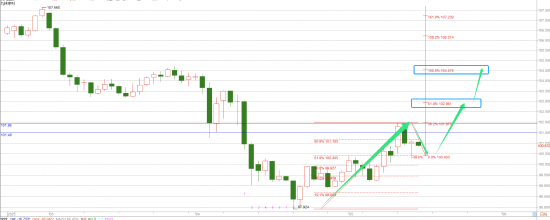 如果维持日线上涨趋势,最终的日线终点位置可能会在104.5这里。
