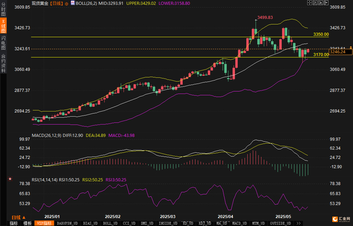 从日线图来看,黄金价格自今年年初以来呈现出明显的上升趋势,但近期开始出现整理迹象。当前价格在3250美元区域交投,距离高点3500美元有一定回调。