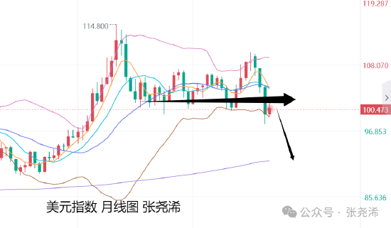 美债10年期收益率,日图及周图等周期仍处于2年的宽幅震荡区间内,一时的走势难以对金价造成影响,但月图的背离走势,则暗示后市有持续走低跌破宽幅震荡区间的预期,而会对金价产生趋势性利好。