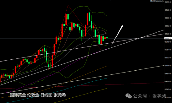 周图:金价上周触底回升收线,未能跌破10周均线,形态上,相对于前周倒垂形态,两者相悖,有暗示后市偏向走宽幅区间震荡行情,关注3100-3440美元区间。