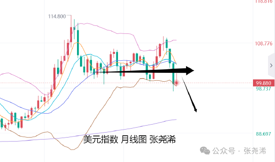 美债10年期收益率,日图及周图虽维持偏强的预期发展,但仍处于2年左右的宽幅震荡区间内,因而对金价影响有限,另外,月图的背离行情,仍暗示后市反弹空间有限,仍有望在刷新前年高点后,转持续回落走低行情,而会持续推动金价反弹,就如同美元指数走势一样。