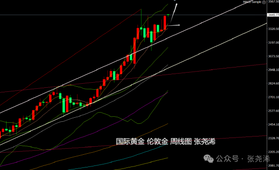 具体走势上,金价自周初开于3311.77美元/盎司,先行录得当周低点3293.69美元,之后连续2天震荡筑底,并就此连续3天反弹走强,于周五录得当周高点3446.53美元,并最终收于3433.74美元,周振幅152.84美元,收涨121.97美元,涨幅3.68%。
