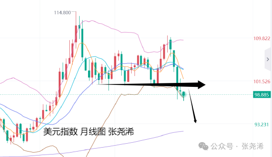 美债10年期收益率,日图周图维持宽幅区间震荡之内,对金价影响有限,月图级别的2年背离走势,仍暗示后市有望走出一波较大的趋势性回落行情,而会支撑金价持续反弹,就如同美元指数一样,故此,对于后市来讲,金价仍具有看涨前景,关注调整回踩看涨支撑的入场机会。