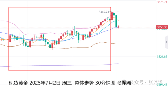 具体走势上,金价自亚市开于3357.40美元/盎司,先行走强录得日内高点3365.51美元,并就此遇阻回落,虽自9点时段触及3342美元一线止跌反弹,重回3360美元上方,但未能持稳,并再度遇阻回落,且延续到美盘开盘,瞬间跌落近40美金,录得日内低点3311.51美元,操作也是精准在此通知多单入场,最后触底回升,并横盘震荡,最终收于3325.91美元,日振幅54美元,收跌31.49美元,跌幅0.94%。