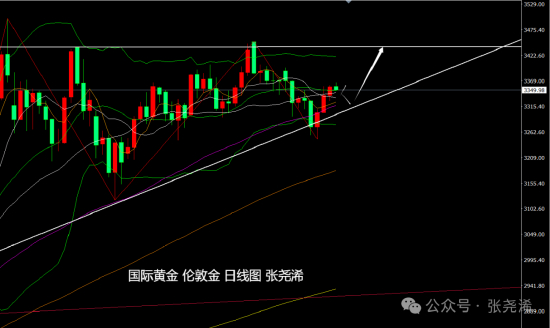 7月4日:上交易日周四(7月3日):国际黄金遇阻回落收跌,未能持稳在日图中轨上方,使得多头力量未能进一步增强,但也未跌破60日均线支撑,以及上升趋势线仍保持着看涨前景,故此,如有进一步走低,60日及上升趋势线支撑,也仍可再度入场看涨。