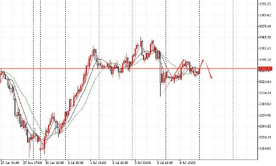 7月7日,黄金本周探底回升,收长影阳线。单看收线可以延续本周走势收阳,也可以收阴,阴阳转换。还是倾向继续上涨。按照本周走势,行情下破3248概率几乎没有。日线昨天3323企稳上涨,最高触及3345受阻回落,日线收长上影阳线。目前日线的是三阳一阴一阳的形态,而周一的走势也犹为重要,一旦继续收阳的话,则后期也将是多头开启了重拾升轨的门阀,目前上方的重点压力仍然维持于3345一线,此位置也是多头首要突破的第一点位,而一旦上破成功的话,则下一目标则维持于3365-3380附近,相反下方的支撑则维持于3310一线,而周一如再次下破此位置的话,则下方的支撑也将有可能朝不保夕,空头也将会继续打开下行之道路,但总体而言,目前方向仍不太明确,
