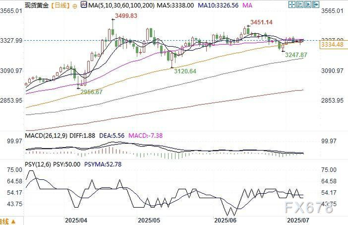 现货黄金日线图 来源:易汇通北京时间7月8日14:30 现货黄金 报 3334.48 美元/盎司