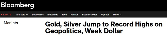 周五(12月26日)亚市盘中,黄金和白银价格联袂暴涨,并创下历史新高,美国彭博社分析称,在地缘政治紧张局势升级以及美元走弱的推动下,贵金属这一轮历史性涨势得以进一步延续。