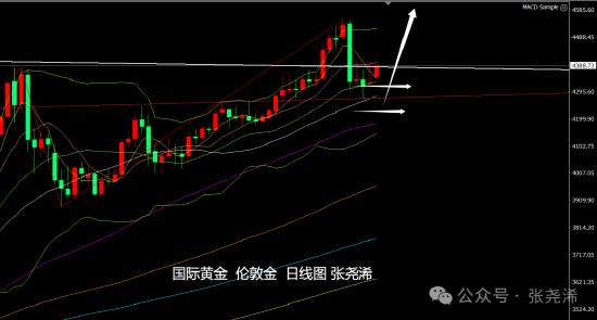 日图;金价今日高开走强,虽然有缺口回补的风险,但连续收取的止跌看涨形态,和整体处于中轨及30日均线等上方保持上行趋势,仍暗示后市将会继续看涨攀升再刷新高,故此,如有回落修复,下方中轨线支撑4325美元附近,30日均线支撑附近4280美元,乃至60日均线支撑4200美元都是入场看涨的位置。并就此等待再看新高。