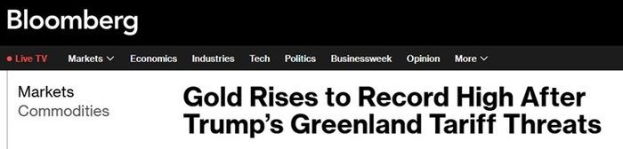 周一(1月19日)亚洲交易市场开盘后,黄金价格大幅跳空高开,随后进一步暴涨并创下纪录高点,此前美国总统特朗普表示,将对反对他拿下格陵兰岛计划的八个欧洲国家加征关税。