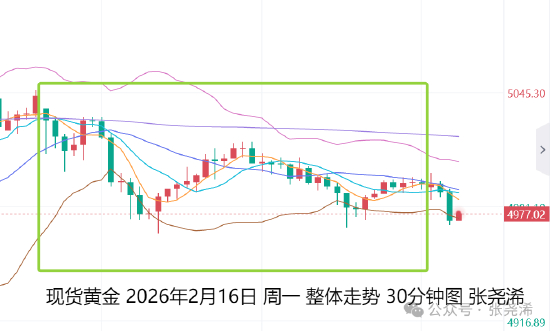 2月17日:上交易日周一(2月16日):国际黄金受多方地缘局势的谈判预期,以及多国市场休市,而在清淡的交易中走低遇阻回落收跌,短期仍面临一定的震荡调整压力,那么后市来看,在反弹收线至5100美元上方前,先行继续维持震荡波动对待。等待回踩30日或60日均线支撑再度入场看涨。