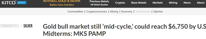 她表示:“从历史标准来看,这是一个处于周期中期阶段的表现特征。如果黄金走势需要与历史平均周期的持续时间和表现相匹配,那么这意味着到10月/美国中期选举前,金价可能升至6750美元/盎司。”