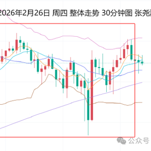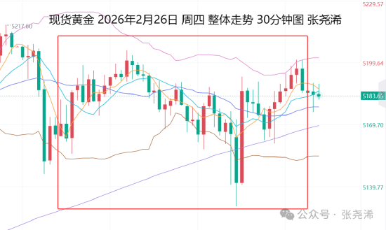 2月27日:上交易日周四(2月26日):国际黄金震荡收涨,未能进一步反弹突破高点,但也未能进一步回落,其美伊谈判取得“重大”进展打压避险情绪,但由于美联储古尔斯比:利率可以下调,加上支撑买盘以及关税混乱忧虑之下,也仍存看涨需求;整体走势依然处于上升趋势之中,下方也有众多看涨均线支撑,故此,方向仍偏向上行,关注各均线支撑位置,仍是做多看涨机会。