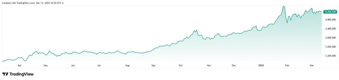 具体来说,在2023年底进入加速上涨后,这种贵金属在2025年快速攀升,甚至在2026年1月创下超过5400美元/盎司的历史新高。