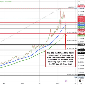 这一低点在技术上意义重大。黄金价格在上升中的200日移动均线附近测试并守住支撑,同时在更大上涨行情——即自2022年9月低点至1月高点这段涨势——的38.2%回撤位前获得买盘支撑,该回撤位位于4078美元附近。这两个水平形成共振,构成了坚实底部,买家依托这一支撑推动金价再次走高。