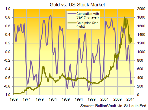 在过去45年中,全年金价和标普500走势的相关性平均为0,也就是基本上没有相关性。