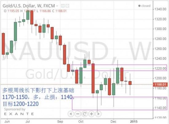 (1)黄金自1131-1238以来的反弹在14年12月22日回调至至61.8%回撤位1173一线,日线回调已完毕,而上周再次回测,以假跌破形式再次重回上行