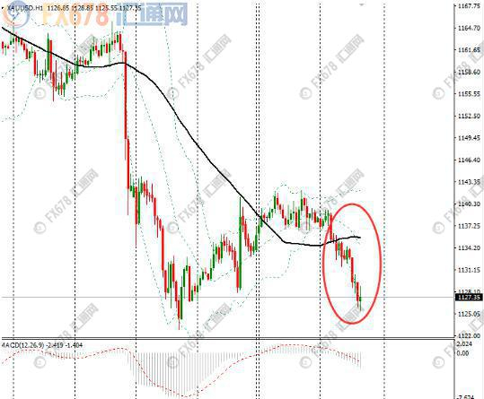 汇通财经易汇通行情软件显示,北京时间23:46,现货金价报1127.35美元/盎司