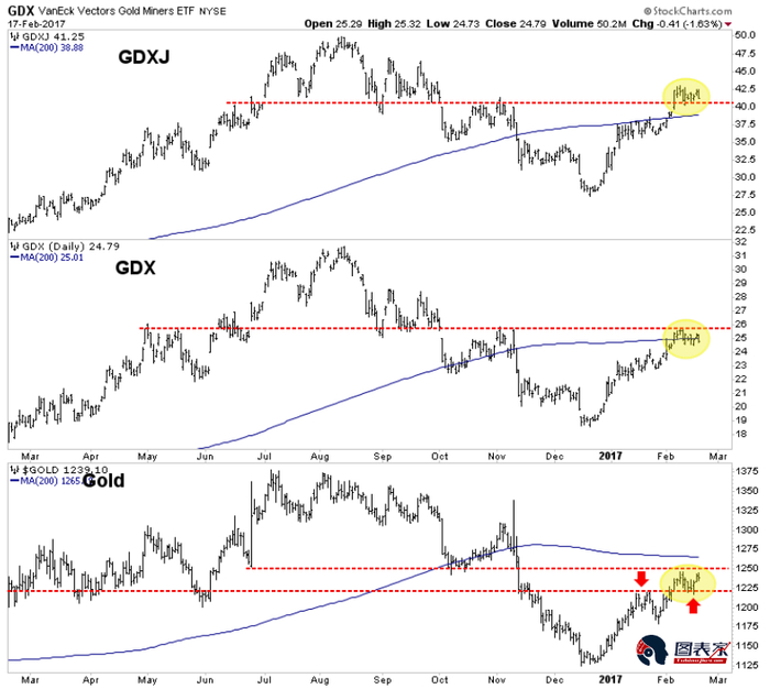从短期趋势来看,黄金已经成功突破1220美元的阻力,从黄金股的表现来看,可能需要一点时间来消化进去的涨势。