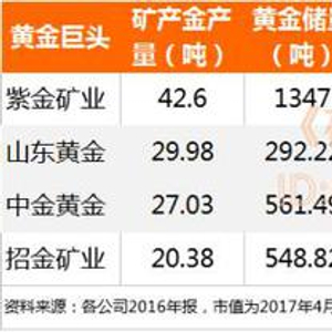 中国四大黄金巨头黄金产量及经营业绩一览表