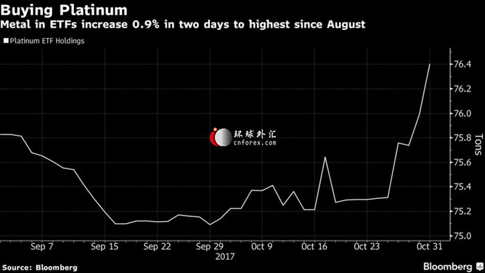 而即便是贵金属市场今年表现最差的铂金,目前也出现了拐点,近两日上涨1.4%至每盎司929.46美元。对其主要市场柴油车需求下降的担忧,并未阻止投资者将铂金ETF的持有量增加至8月份以来的最高水平。