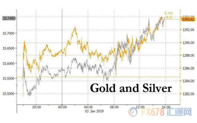 周四(1月3日)美元走软,因美国制造业活动数据疲弱,美国12月ISM制造业指数创10年来最大跌幅令美元承压。美股重挫、美元走软令金价上涨,现货黄金创2018年6月15日以来新高至1294.99美元/盎司。油价一些不同的报告均显示主要产油国的原油产量下降,令油价得到提振。原油期货连续第四日收高,但股市下挫以及对于原油需求前景的担忧,仍然令油价受到抑制。