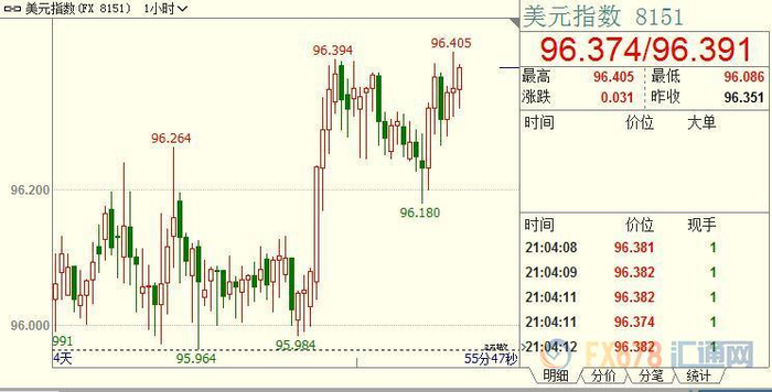 现货金价创下1月4日以来低点至1276.82美元;美指刷新1月4日以来高点至96.417,因10年期美债收益率自1月初创下2.543%的一年低位后持续回升,带动美元走高。