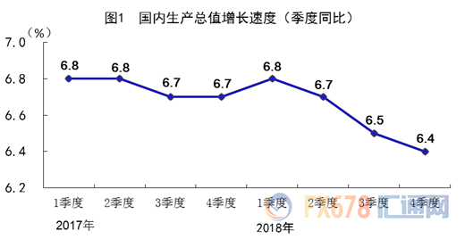 中国周一公布的数据显示,中国去年四季度GDP同比增速放缓至6.4%,和调查预估中值一致,为近10年低位。2018全年增速更是创28年以来新低。但市场似乎对该数据泰然处之,反而金价扩大了跌幅。