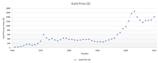 Forbes网站证券研究团队Trefis Team研究了1970年到2019年的近50年间,国际黄金的价格变化以及其与供应需求之间的关系。