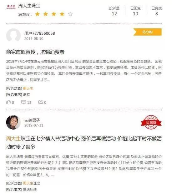 除此之外,近年来周大生也遭遇了不少消费者的吐槽和投诉。